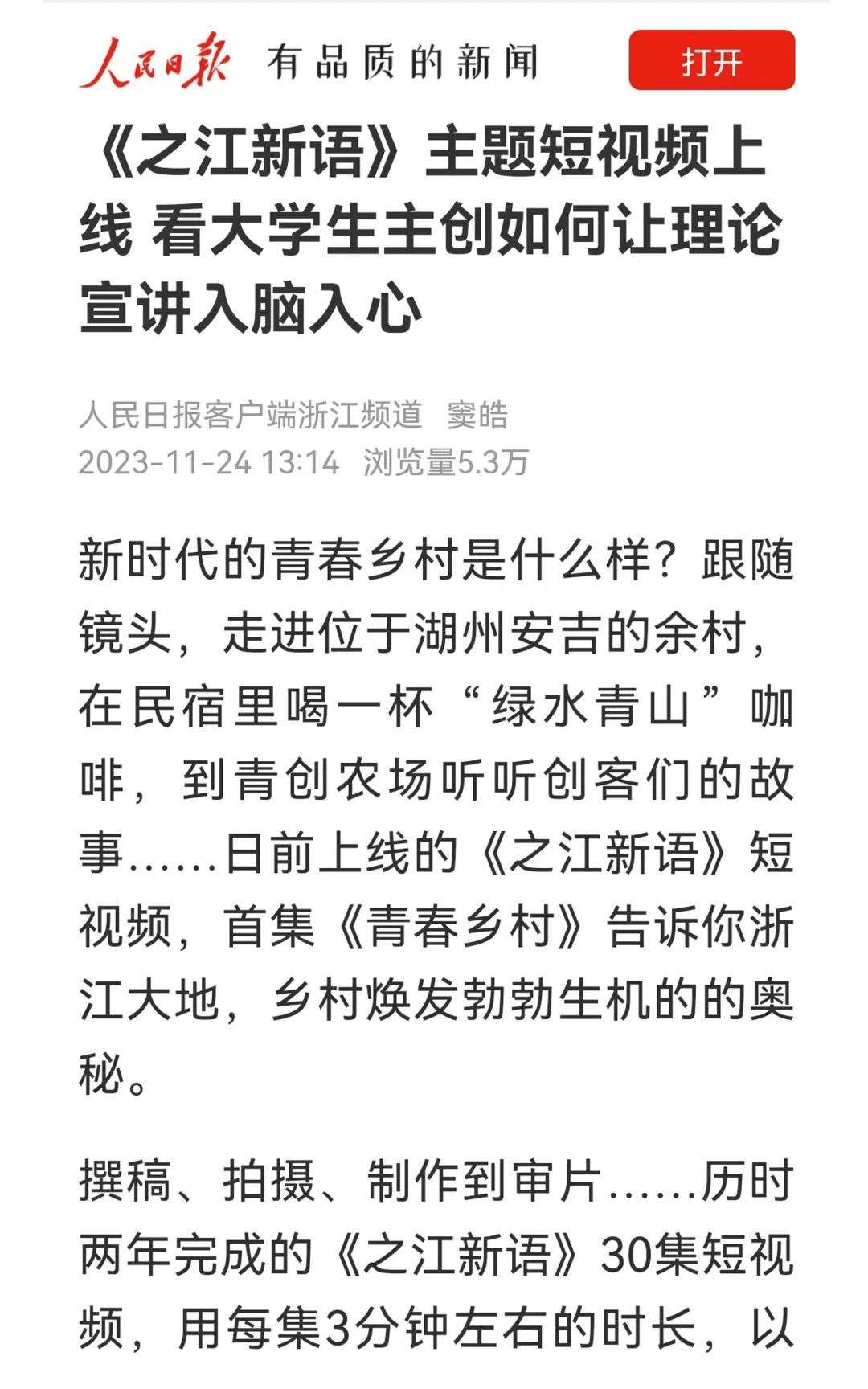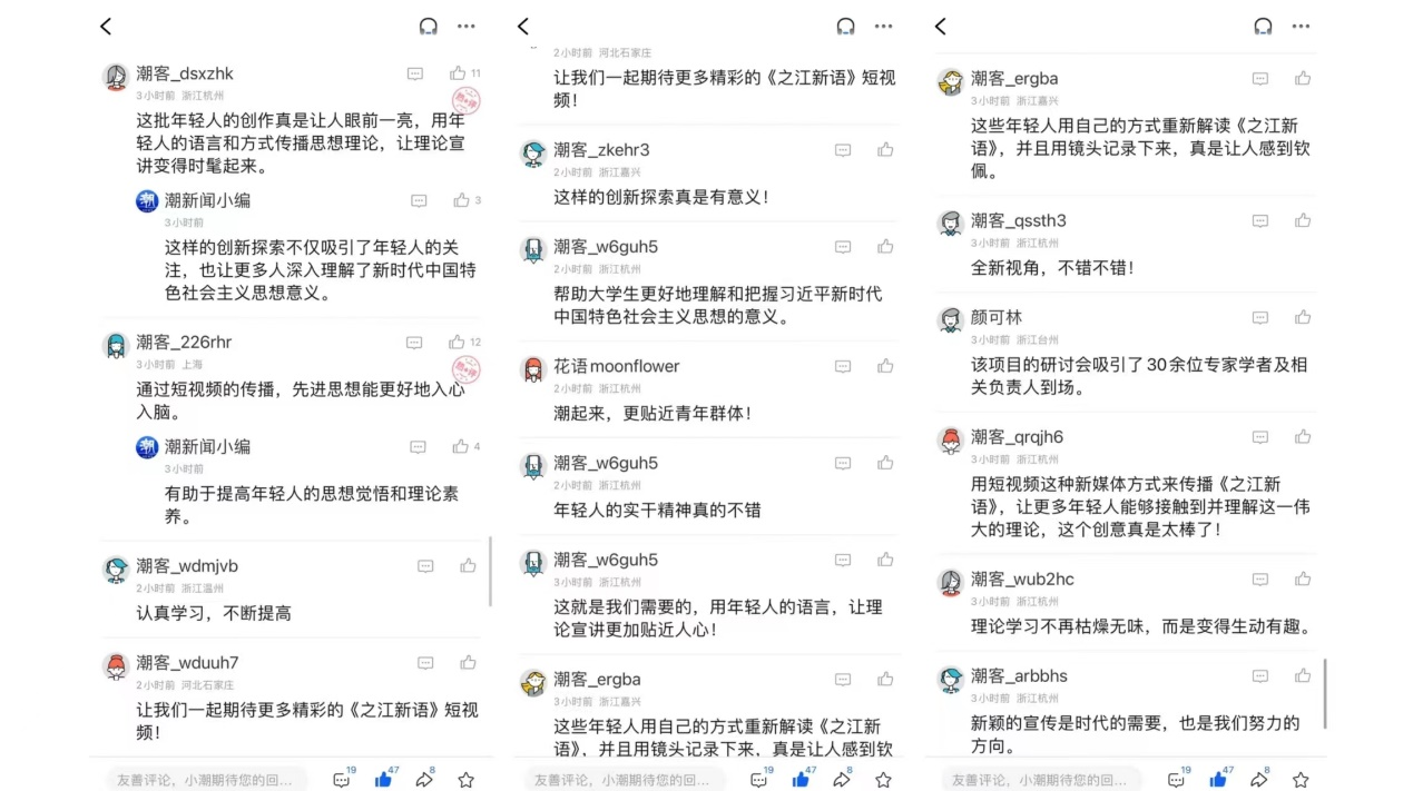 这一创新举措和有益探索也得到了《人民日报》《光明日报》《中国青年报》《浙江日报》等主流媒体的广泛报道,获得了专家学者、在校大学生以及广大网民的纷纷点赞。同时,《之江新语》短视频也通过凤凰网等境外媒体发布,得到了中央政府驻港联络办的高度认可。