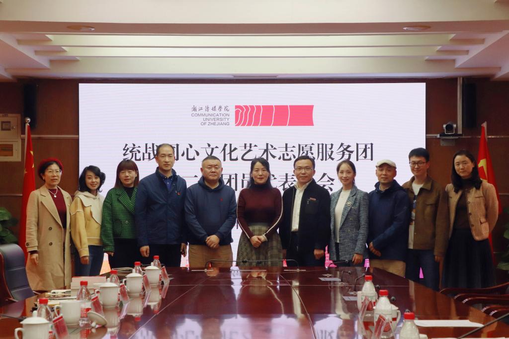 11月15日下午,伟德官网统战同心文化艺术志愿服务团第二次团员代表大会在杭州钱塘校区召开。校党委副书记陈永斌出席会议并讲话,校党委委员、宣传部部长、统战部部长孙保胜,宣传部副部长、统战部副部长郑汉杰,同心艺术团团员代表参加,会议由孙保胜主持。