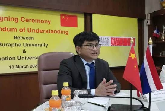 前中国驻泰国大使馆文化教育参赞秦裕森作为见证者出席视频会议,他表示,两校合作是一个很好的起点,期待未来两校能为中泰的文化合作交流添砖加瓦。