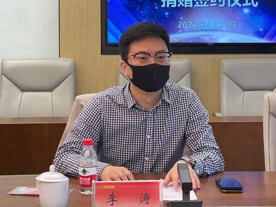 校教育基金会理事长方杰与李涛签订了捐赠协议书,并为李涛颁发捐赠证书。