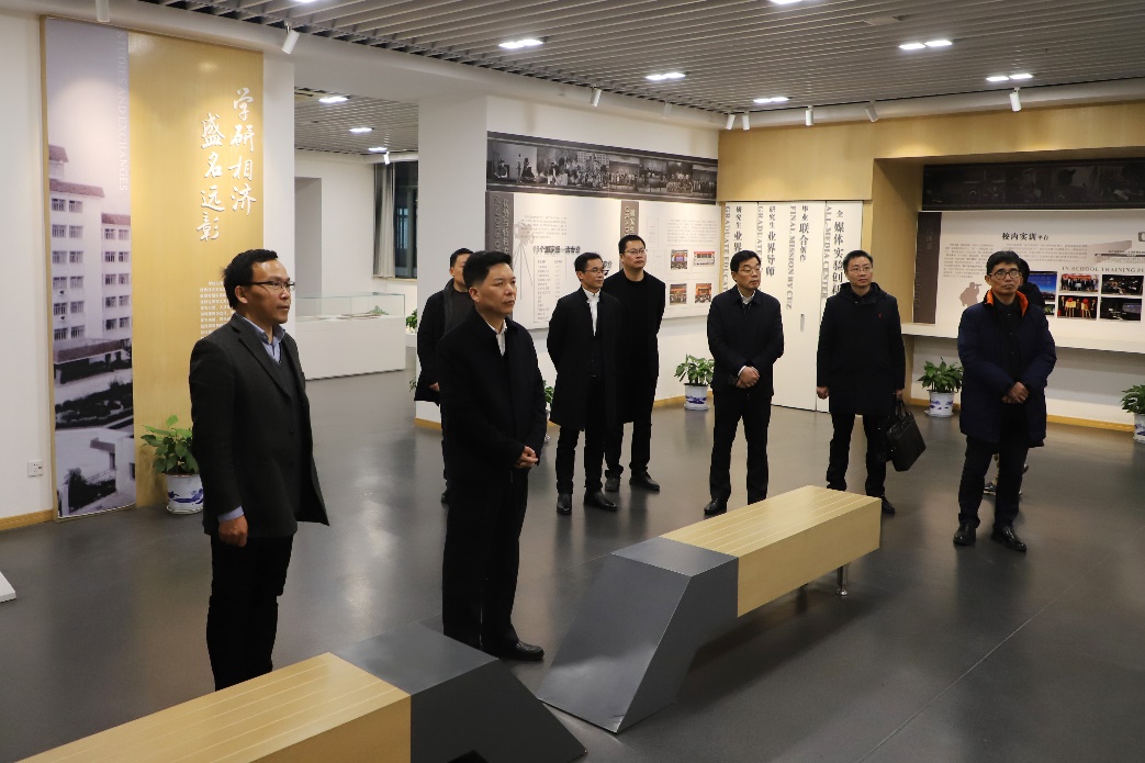 座谈会前,周晓国一行参观了伟德官网校史陈列馆、播音主持艺术学院等场所。