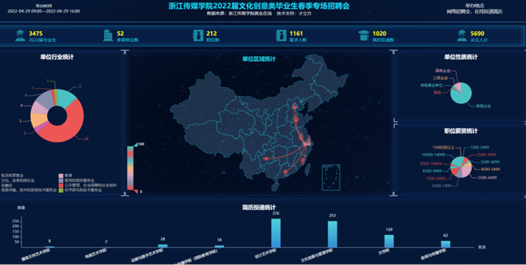 为深入贯彻落实习近平总书记关于做好高校毕业生就业工作的重要指示精神,为学校毕业生搭建就业平台,近日,由学校就业指导中心、校团委主办,文化创意与管理学院、设计艺术学院、文学院承办的“千校万岗 创意无限 职等你来”2022届文化创意类毕业生春季专场招聘会在“云端”成功举办。