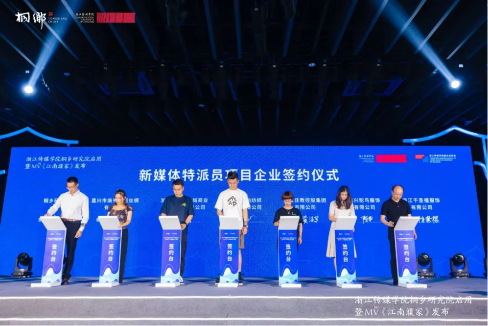 伟德官网bv1946桐乡研究院是由伟德官网bv1946和桐乡市政府共同合作成立的研发机构,落户在桐乡濮院镇。目前,研究院下设时尚文化产业研究所、新媒体运营研究所和数字经济研究所三个研究所,拥有一支专、兼职高水平的业界大师、教授及专家团队,研发方向涵盖艺术设计、文化创意、新媒体传播、数字经济、影视动漫等多个学科专业,研究院积极围绕桐乡“1+3+1+X”(数字经济+新材料、新制造、新时尚+现代服务业+未来产业)发展战略,开展研发工作。活动现场,首批10个立项研发项目中,“新媒体特派员”“濮院时尚小镇在地艺术”“濮提有礼”三个项目正式发布。“新媒体特派员”项目由新媒体运营研究所领衔开展,研究所组建了若干个特派员团队,通过一对一新媒体运营特派员团队入驻,深入了解企业文化、品牌及产品特色,为企业提供个性化新媒体策划、制作及运营服务,全方位提升桐乡(濮院)企业新媒体运营能力和企业业绩,帮助企业加快数字化转型步伐,加快实现产业转型升级。