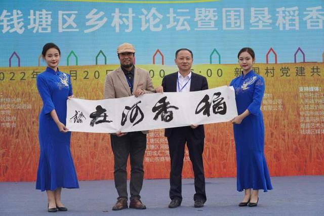 11月20日,“稻香河庄 同心共富”2022钱塘区乡村论坛暨围垦稻香艺术节,在这片金黄稻田旁举行。