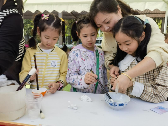 除了媒介展示和实践体验,开放日还包含乡村振兴与传统文化、学术研究和知识普及两种元素。文化市集上的温州黄汤茶、湖州湖笔、杭州雕版印刷、金银细工、捏塑等工艺展示,浙传大学生社团汉服文化展示、“助农直播”网络直播展示等,内容丰富多彩,让人纷纷驻足。