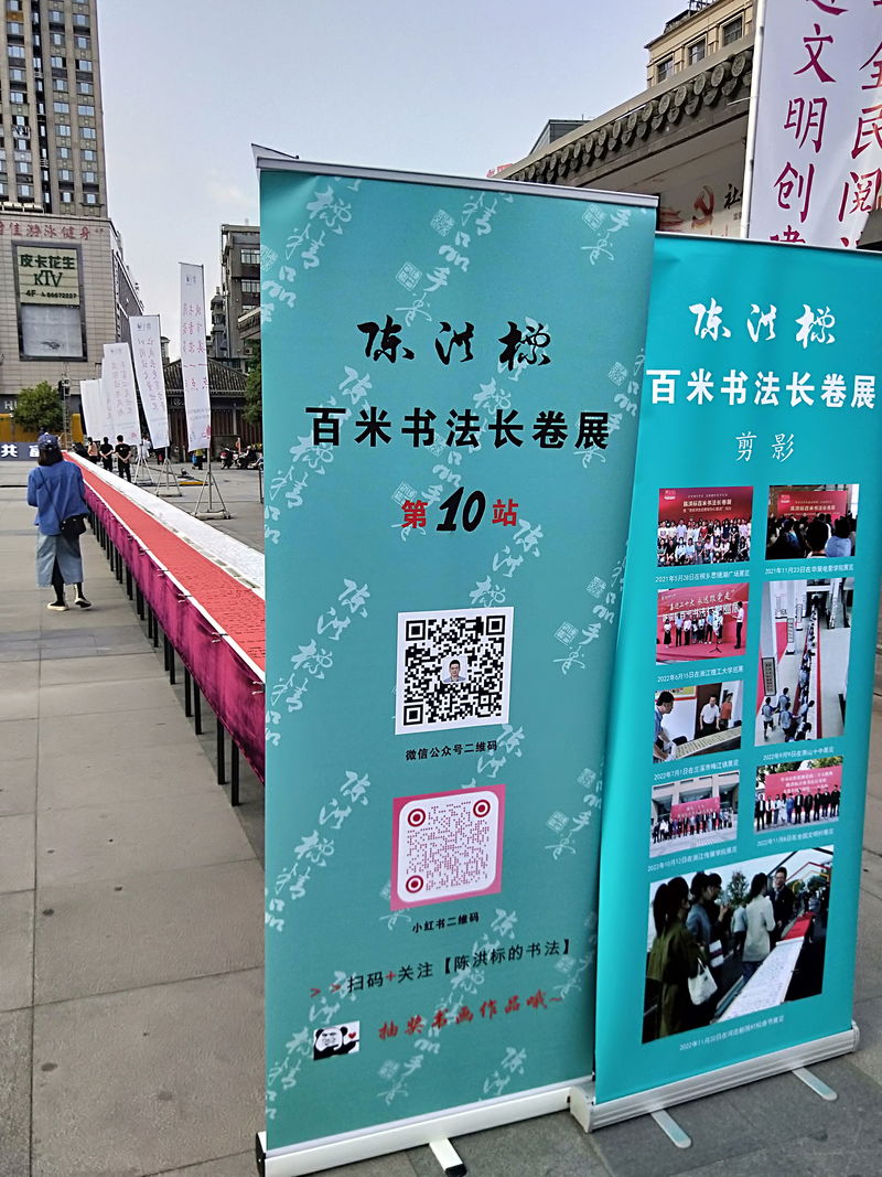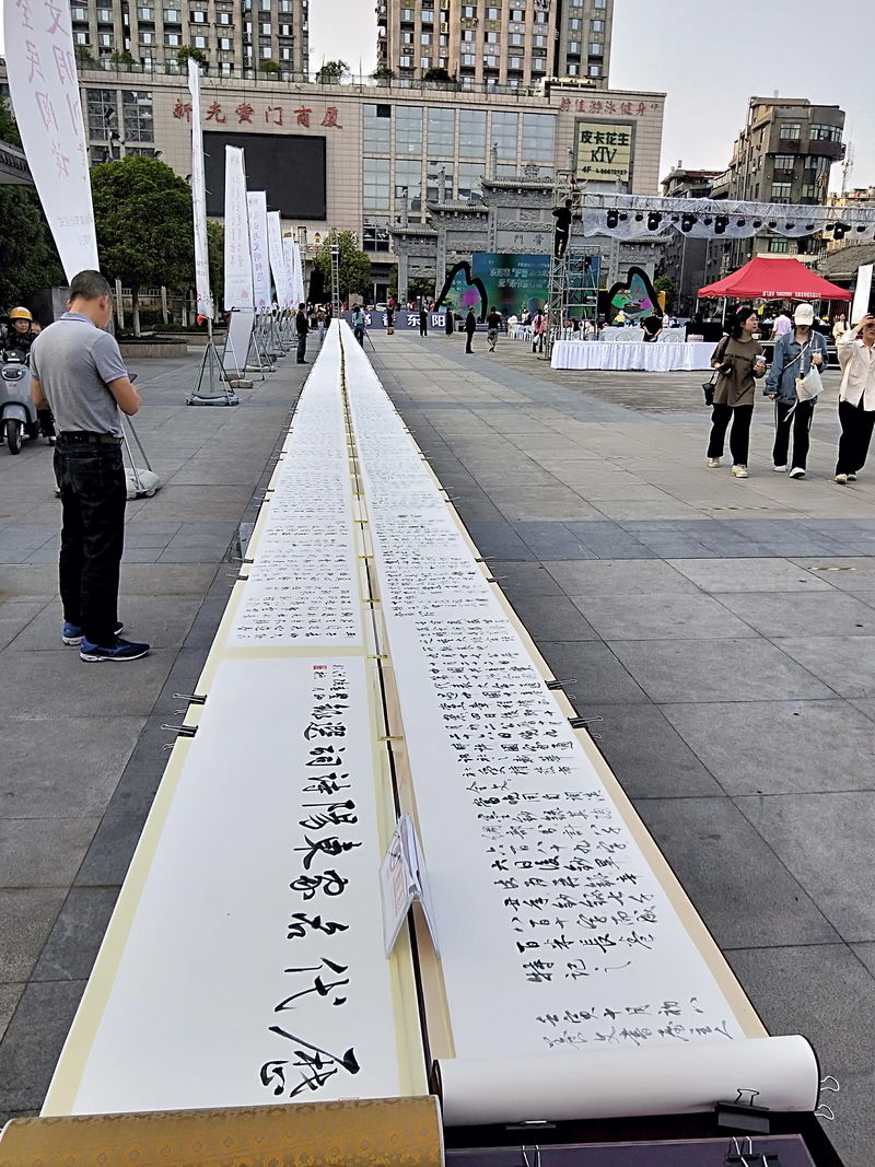 ▲2021年5月28日,“陈洪标百米书法长卷展”在桐乡思镜湖广场展出