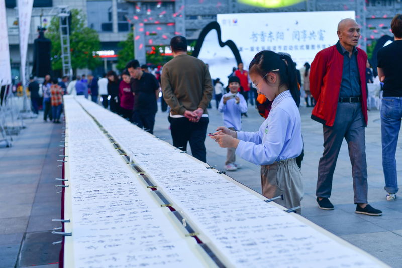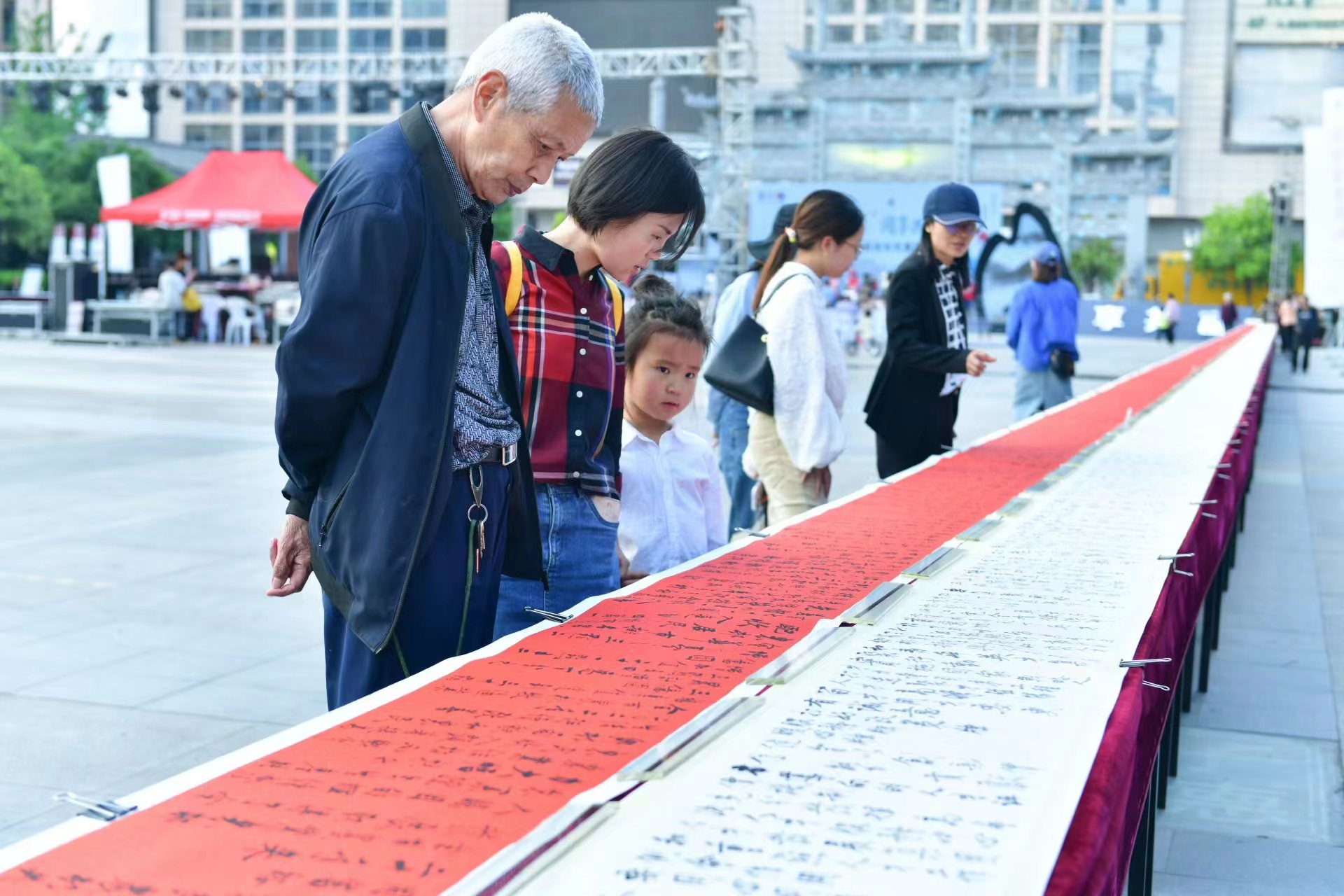 很多市民们边看边赞叹不已:“这么长的书法长卷,还是第一次见,太壮观了,太震撼了!”