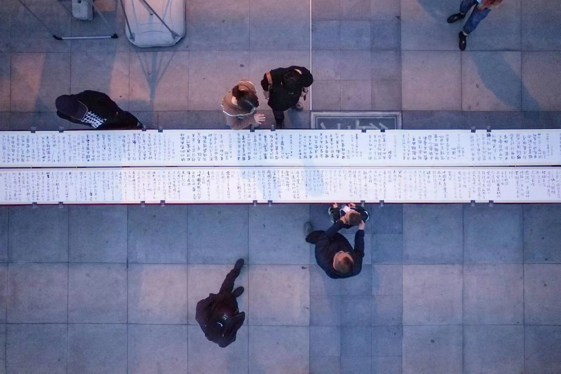 ▲2021年11月23日,“陈洪标百米书法长卷展”在华策电影学院展出