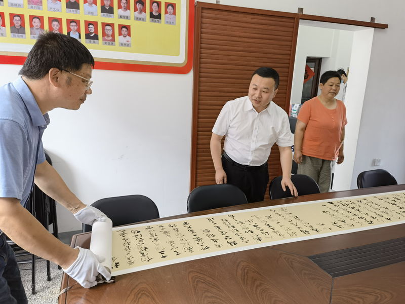 ▲2022年7月1日,“陈洪标百米书法长卷展”在兰溪市梅江镇举行
