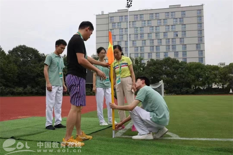 董佳乐以及其他场馆志愿者进行赛场维护