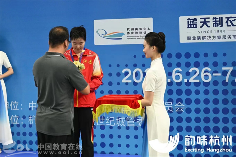 车冰轶是伟德官网bv194621级舞蹈编导专业的学生,作为学生干部和预备党员的她,渴望为亚运会的顺利举办贡献一份自己的力量。经过层层选拔,她如愿成为了一名颁奖礼仪志愿者。过去的三个月,她先后参加了韵味杭州奥体游泳馆2023年全国游泳冠军赛、2023年花样游泳冠军赛、2023年全国残疾人游泳锦标赛这三场测试赛。辛苦是必然,以举托盘为例,“看似简单,其实大有门道。不仅讲求美感,更有力度上的要求。”辛苦之余,更多的是欣慰和惊喜,在车冰轶服务的2023年全国残疾人游泳锦标赛测试赛中,她被参赛者身上坚持不懈永不服输的精神感动,受他们鼓舞,车冰轶决心在之后的训练中用更高的标准要求自己不断进步。