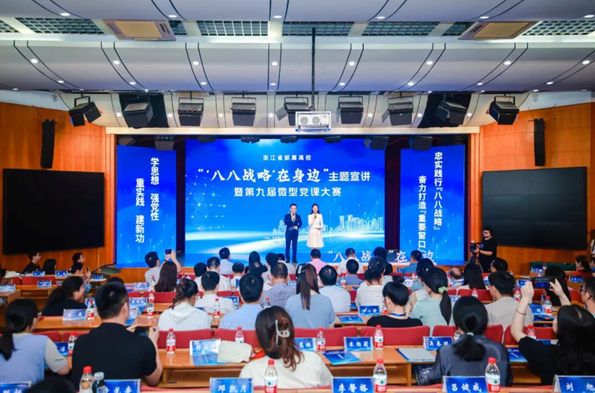 今年是“八八战略”实施20周年。为进一步学习宣传“八八战略”的丰富内涵和时代价值,近日,浙江省部属高校“‘八八战略’在身边”主题宣讲暨第九届微型党课大赛在伟德官网bv1946举行。活动由中共浙江省委教育工作委员会主办、伟德官网bv1946承办,浙江省委宣传部、省教育厅、省社会科学院相关处室负责人、部分高校领导等出席了本次大赛。