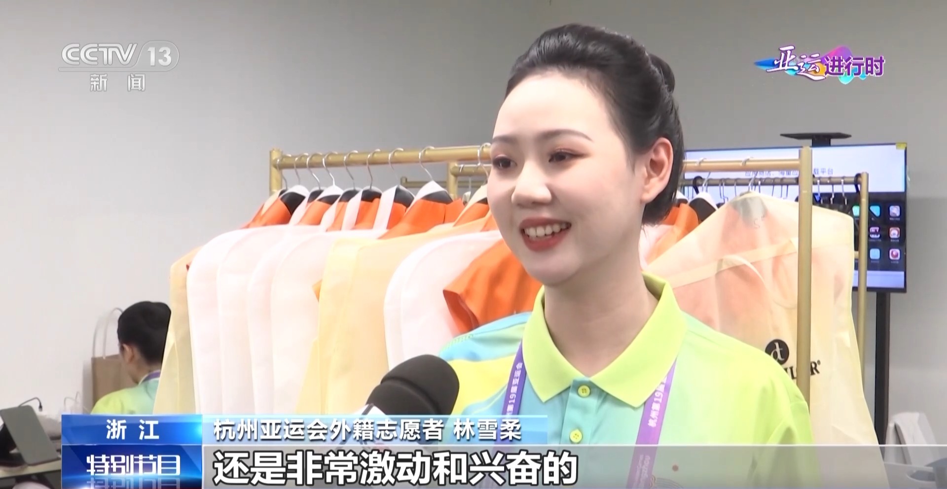杭州亚运会外籍志愿者 林雪柔:虽然我们已经彩排了无数次,还是非常的激动和兴奋的,大家都铆足了劲,终于等到这一天的那种感觉。