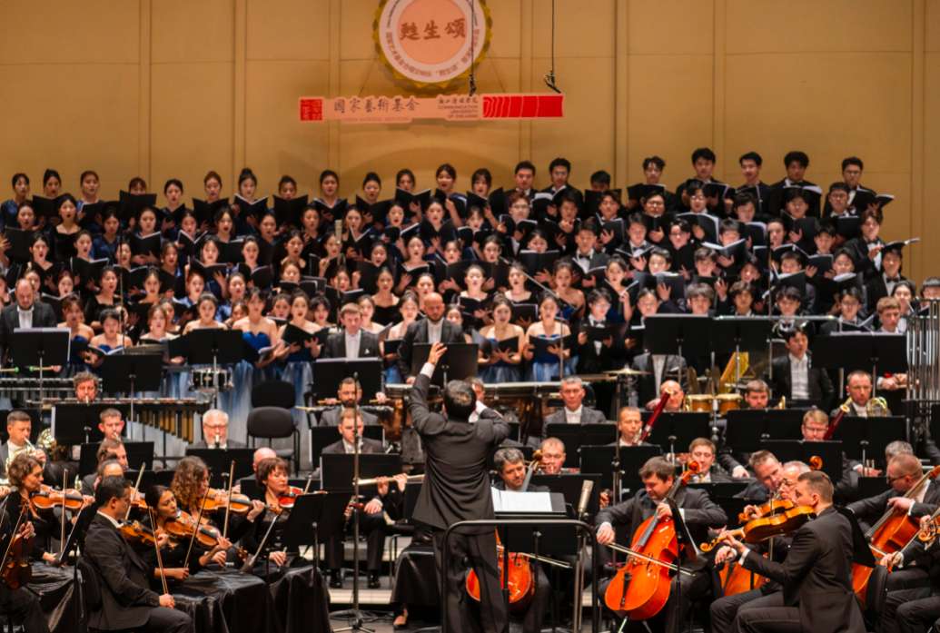 11月7日晚,大型合唱交响乐《甦生颂》首演季音乐会暨拉赫玛尼诺夫《第二号交响曲》音乐会在杭州大剧院举办。