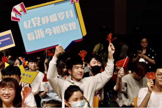 新颖的活动形式让同学们受益匪浅,现场不时响起热烈的掌声和喝彩声。电视艺术学院19电编3班潘裕林同学表示:“我觉得这样的党史学习教育活动很接地气,通过和老师们一起登台完成节目,让我们在演中学、学中悟,更好地理解建党百年的光辉历程,也更加坚定我们新时代青年贡献青春力量的决心。”