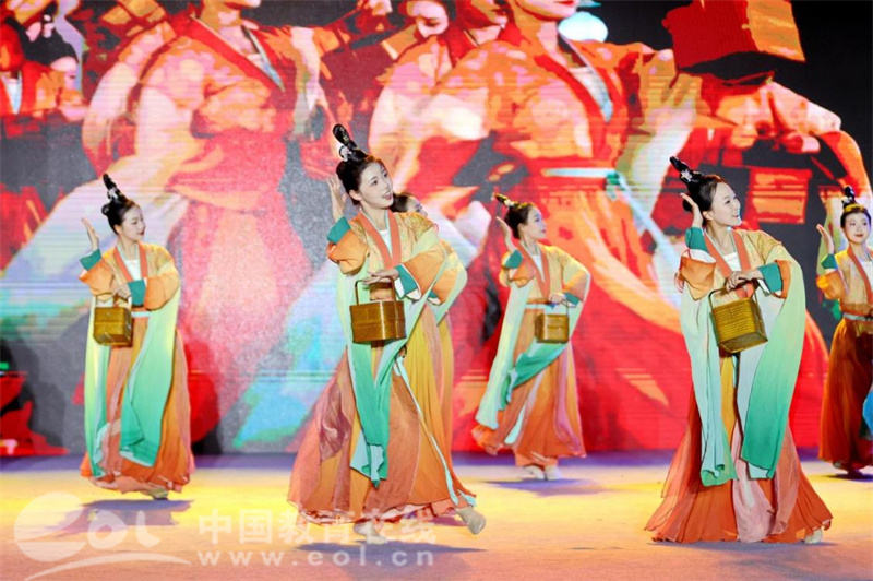 师生们动人的歌声和曼妙的舞姿,在现场光影的衬托下,为观众们带来了一场视听盛宴。流行乐队秀《风吹麦浪》、器乐合奏《梁祝》、独唱《秣马》、合唱《我的太阳》、舞蹈《华灯夜宴》、音乐说唱《带你游上虞》、歌舞《美丽乡村》,还有朗诵和配音节目,既融合了上虞当地特色又展现出新时代青年的朝气蓬勃,丰富的演出形式在师生们精湛的技艺和饱满的热情衬托下,让村民们毫不吝啬自己的赞美,掌声欢呼声此起彼伏,与晚会的歌声融为一体,仿佛谱写出更加动人的音符。