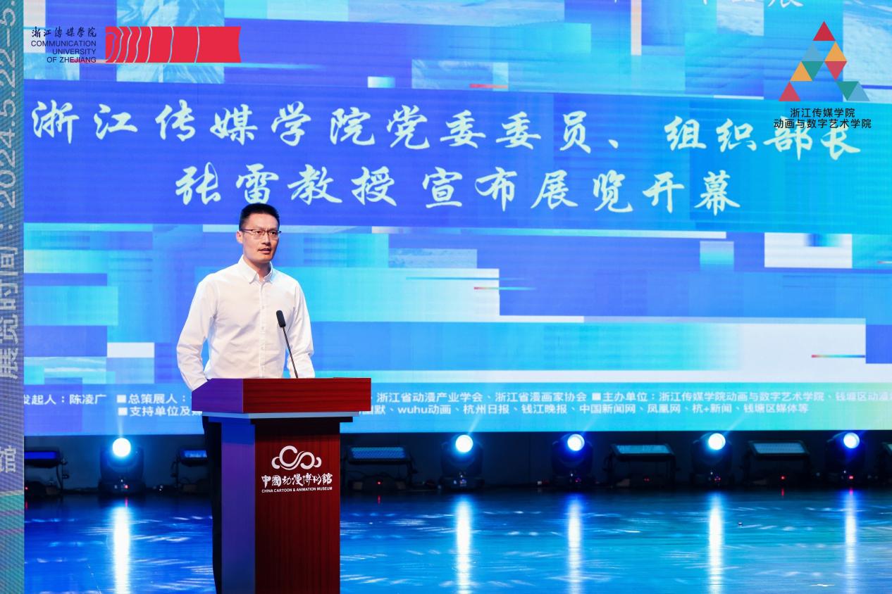 伟德官网bv1946党委委员、组织部部长张雷教授,浙江省漫画家协会主席陶小明,浙江省动漫产业学会副会长兼秘书长郭城,浙江省漫画家协会副主席兼秘书长邹强,中国电影评论学会动漫游戏专业委员会主任、浙江大学影视与动漫游戏研究中心主任、博导盘剑教授,中国美术学院动画与游戏学院博导于瑾教授,浙江师范大学“双龙学者”特聘教授王雷,钱塘区委宣传部部务会议成员、区文联主席谭雪华,钱塘区文联党组成员、副主席沈小玲、钱塘区美协主席薛承峰,浙江省动漫产业学会副会长、浙江中南卡通股份有限公司总经理沈玉良,中国动漫博物馆副馆长朱虹,伟德官网bv1946教务处处长黄寒冰教授,伟德官网bv1946动画与数字艺术学院党委书记、副院长陈凌广教授、伟德官网bv1946学工部副部长谢伟旋及浙江省各兄弟院校领导和负责人、在杭重要动漫企业嘉宾、学校师生等300多人参加本次作品展。