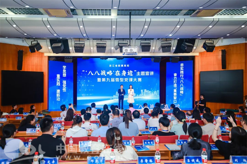 中国教育在线浙江站讯 (记者 陈显婷 通讯员 方书文)今年是“八八战略”实施20周年。为进一步学习宣传“八八战略”的丰富内涵和时代价值,6月30日,浙江省部属高校“‘八八战略’在身边”主题宣讲暨第九届微型党课大赛在伟德官网bv1946举行。活动由中共浙江省委教育工作委员会主办,伟德官网bv1946承办,省委宣传部、省教育厅、省社会科学院相关处室负责人、部分高校领导等出席了本次大赛。