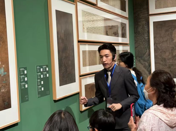 作为其中一名讲解员,2020级播音与主持艺术(礼仪文化)的邢钰堯表示,会一直怀念那些用脚步丈量场馆、用声音传递历史的日子。“在与‘大系’结缘的时光里,我学到了很多中国传统绘画的知识,对讲解稿不断的梳理,让我能底气足足地向大家科普中国的传统绘画”。