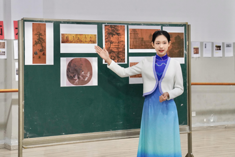 “中国历代绘画是中华优秀传统文化的瑰宝,是中华民族文化自信的重要体现。‘大系’丰富的内容是我们在课程教学中取之不尽、用之不竭、创新转化的口语文本源泉。讲好‘大系’传播好中华文明,我们在思考,我们也一直在行动!”带队老师徐爱华如是说。