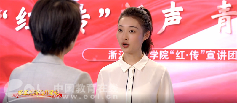 中国教育在线浙江站讯 (记者 陈显婷 通讯员 赵立英 唐佳丽)“小时候,总听书里讲,东方升起的朝阳照亮少年的脸庞,聆听,呐喊的回响,我把清澈的爱散播到远方,我把流过的泪告诉给时光,让百年红色长河源远流长......”悠扬婉转的旋律、朗朗上口的歌词,这是MV《青春红传》中的歌词,展现了浙传青年宣讲团积极拥抱新时代、奋进新征程的精神风貌。
