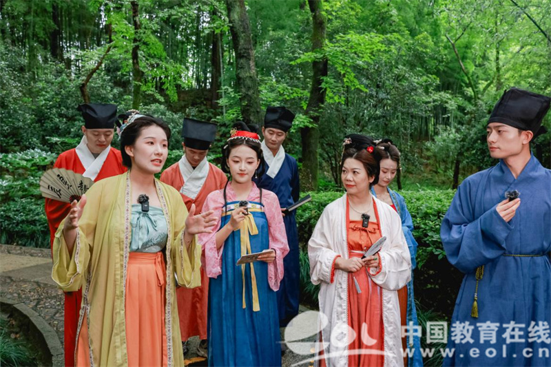 中国教育在线浙江站讯 (编辑 陈显婷 通讯员 张昊敏)兰亭,地处绍兴西南,毗邻兰渚山麓,相传春秋战国时期越王勾践曾在此种过兰草,汉代又设过驿亭,是江南的著名园林。这片风景秀丽、被历史与文化浸润的土地,自古便是文人墨客心中的圣地。“此处有崇山峻岭,茂林修竹,又有清流激湍,映带左右。”永和九年(353)上巳节,王羲之与好友同聚兰亭,作曲水流觞之戏,酒后用蚕茧纸、鼠须笔,乘兴挥洒写下《兰亭集序》。自此,“曲水流觞”成为千古佳话,兰亭也成为了闻名世界的书法圣地。6月24日,由贵州茅台酒厂(集团)保健酒业有限公司、贵州茅台浙江省经销商联谊会和伟德官网bv1946联合主办,绍兴兰亭景区管理有限公司和伟德官网bv1946文旅融合传播创新中心承办的“曲水流觞·赴良辰——浙东唐诗之路沉浸式文化旅播行”活动在绍兴兰亭景区举行。