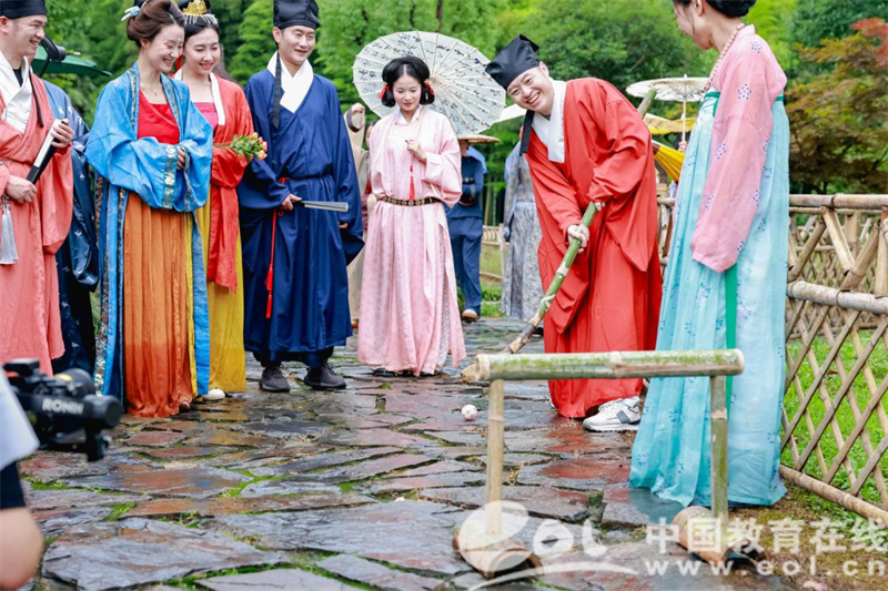 养生法在《全唐诗》收录的2200余位诗词作者中,有400多位在浙东唐诗之路上写下了1500余篇佳作。作为浙东唐诗之路的一个重要节点,会稽山是一个集合了风光山水、文人风雅与积极生活方式的宝地。而此处最广为流传的,莫过于王羲之与友人在兰亭修禊时所作的《兰亭集序》。自古诗酒不分家,“曲水流觞”就是对诗酒文化的最佳体现。如今的兰亭景区,再现了当年的盛景。活动现场,一条蜿蜒曲折呈“之”字型的水道两旁,身着古服的游客们列坐其间,在NPC和工作人员的引导下体验了充满趣味的诗词小游戏。特制的酒杯漂浮在水面上,当酒杯停下时,面前的游客便背诵古诗一首,仿佛穿越时空,回到了那个诗酒趁年华的时代,真正做了一回诗人。曲水流觞两侧投壶和捶丸的体验项目也吸引了大批游客进行尝试,精准掷入壶中的箭、随着木棒挥舞落入洞中的球都引得周围一片喝彩,使现场充满了欢声笑语。通过沉浸式体验古人文化活动,游客们亲身体会到了唐诗浓厚的文化氛围,加深了对浙东唐诗之路文化内涵的认识和理解,也领略到了中华优秀传统文化的独特魅力。