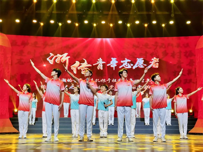 校最美志愿者代表、亚运会预录用志愿者代表和校朗诵团联袂带来的诗朗诵《青年有“志”逐浪前行》,既回顾了学校志愿服务的精彩瞬间,又深情宣告了要以青春之志与浙江共筑亚运荣光的庄严承诺。“杭州亚运会作为在学校门口举办的一场国际盛会,青年生逢其时何其有幸!我们想通过诗歌抒发我们的激情,更表达我们服务亚运的坚强决心。”亚运会预录用志愿者师启然演出后动情地说。