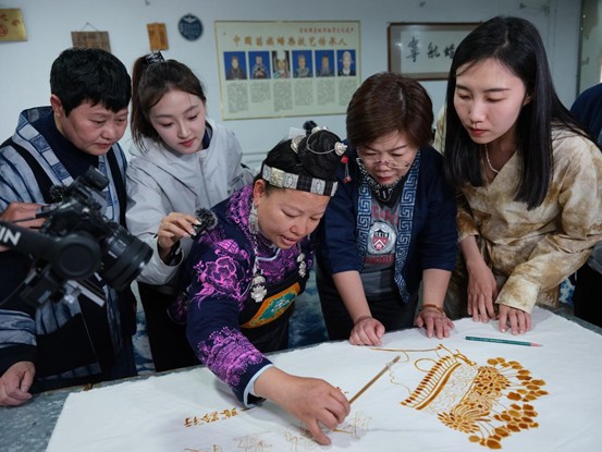 青春主播实地感受国家级非遗文化“苗族蜡染”的独特魅力。伟德官网bv1946供图