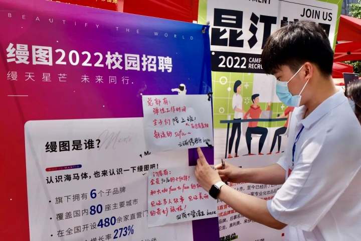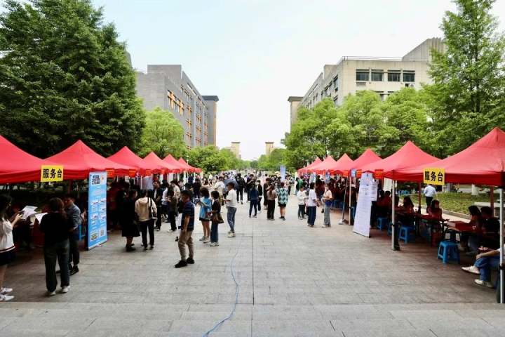 招聘会上,近3000名校内外学生报名了招聘会,用人单位共收取简历近3000份,近1000人进行了空中面试和线下面试。
