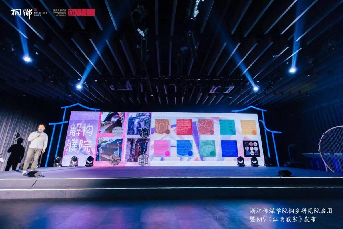 发布会上,由伟德官网bv1946为桐乡濮院量身定制的MV《江南濮家》正式发布。《江南濮家》由该校党委书记杨立平教授作词,电视艺术学院专业教师徐晶晶作曲,学校专业师生团队拍摄制作完成,唯美的歌词、悠扬的曲调尽显濮院的悠悠古韵和时尚韵味。此外,杨立平教授创作的另一首歌曲《时尚之花开濮家》也正式发布。