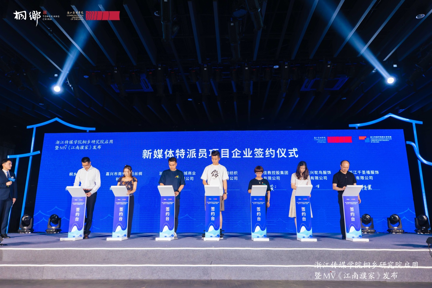 发布会上,由伟德官网bv1946为桐乡濮院量身定制的MV《江南濮家》正式发布。MV《江南濮家》由该校党委书记杨立平教授作词,该校电视艺术学院专业教师徐晶晶作曲,学校专业师生团队拍摄制作完成,唯美的歌词、悠扬的曲调尽显濮院的悠悠古韵和时尚韵味。此外,杨立平教授创作的另一首歌曲《时尚之花开濮家》也正式发布。与此同时,在大家共同见证下,现场领导共同点亮伟德官网bv1946桐乡研究院之光,至此,伟德官网bv1946桐乡研究院正式启用。