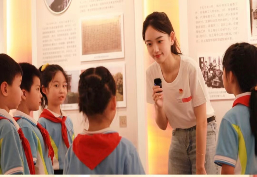 宣讲员王月如回忆起令她感触最深的一幕:一位四年级的小女孩拿着纸笔认真地听完了她的讲解后,第二天将她妈妈带到陈列馆,变身“小宣讲员”,为妈妈讲解张秋人先生的故事。“只听了两次讲解就可以流畅地讲述,不禁让我向她竖起大拇指。”王月如笑着说,我们讲解在她心里种下了红色的种子,并且生根发芽,而她也用她的宣讲让我感受到真理的力量、宣讲的魅力——这是00后大学生和10后小学生之间的共鸣和传承。