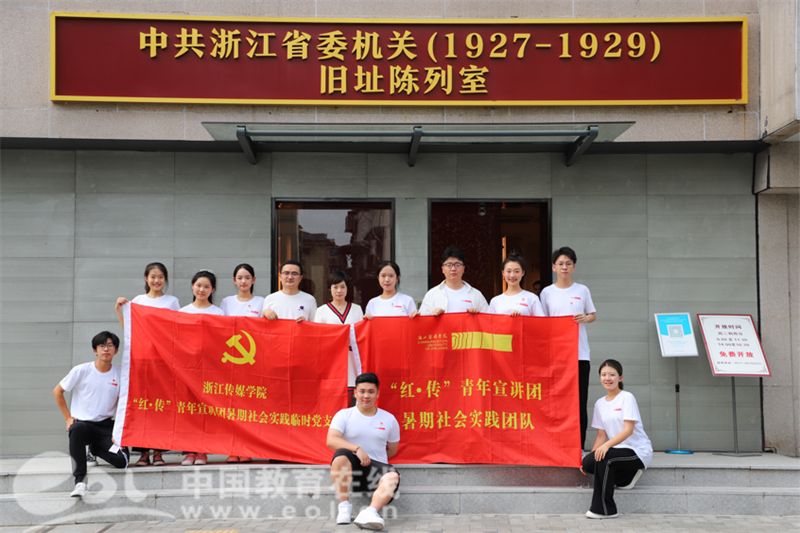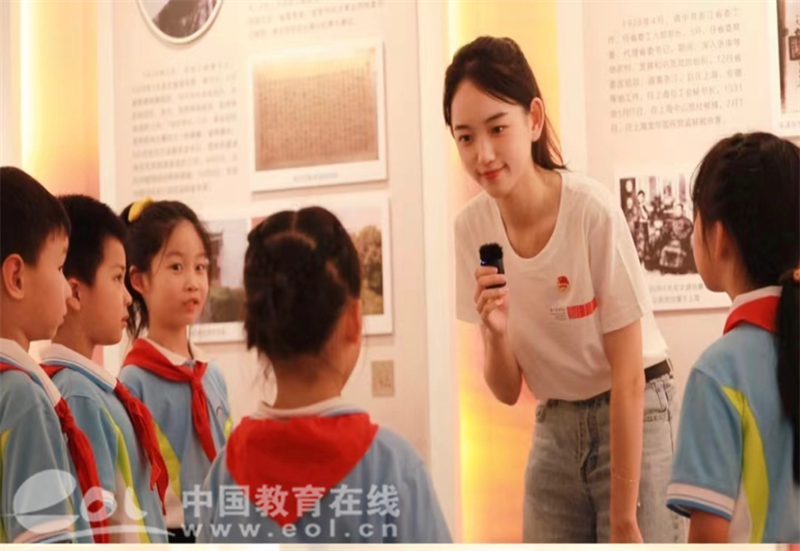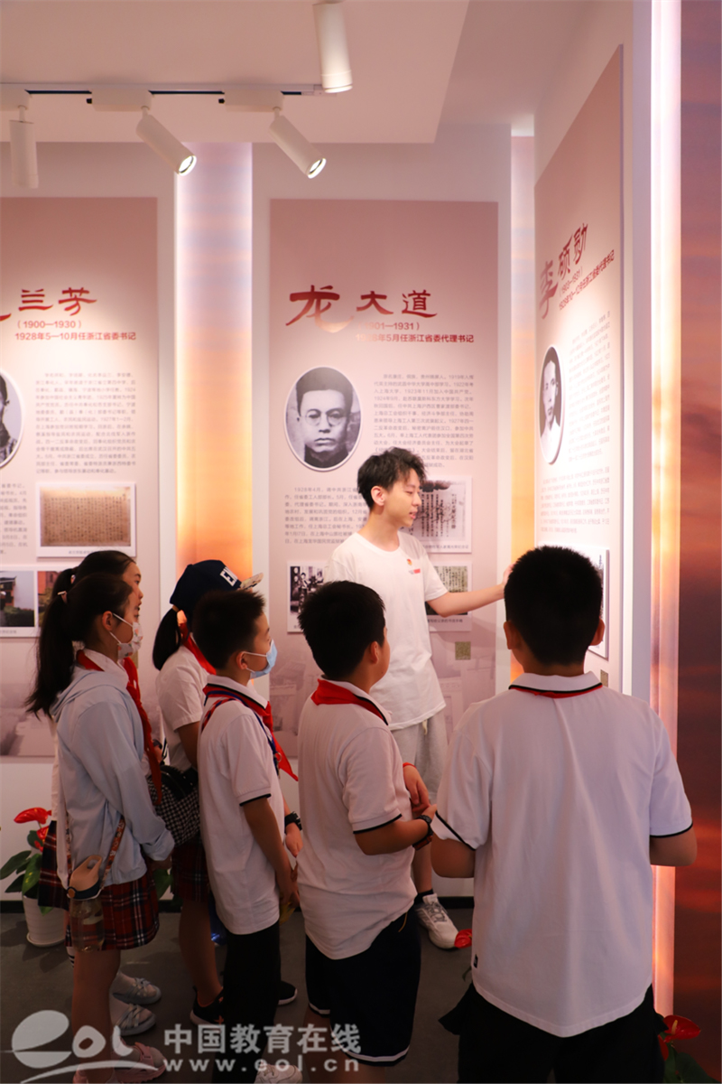 中国教育在线浙江站讯 (记者 张可宁 通讯员 杜巍 任唯萱)“同学你好,欢迎来到浙江省委机关旧址陈列室参观,我是今天的讲解员贺一诺,现在你看到的是第一单元:力挽狂澜——中共浙江省委在危难中诞生。1927年4月初,国民党右派在浙江发动反共'清党'活动,白色恐怖在浙江蔓延…… ”这是伟德官网bv1946“红·传”青年宣讲团暑期社会实践团队的大学生正在为前来参观的小学生进行讲解介绍,这样的场景,在火热的七月上旬,在位于杭州市狮虎桥河下2号的“浙江省委机关旧址陈列室”中每天发生。
