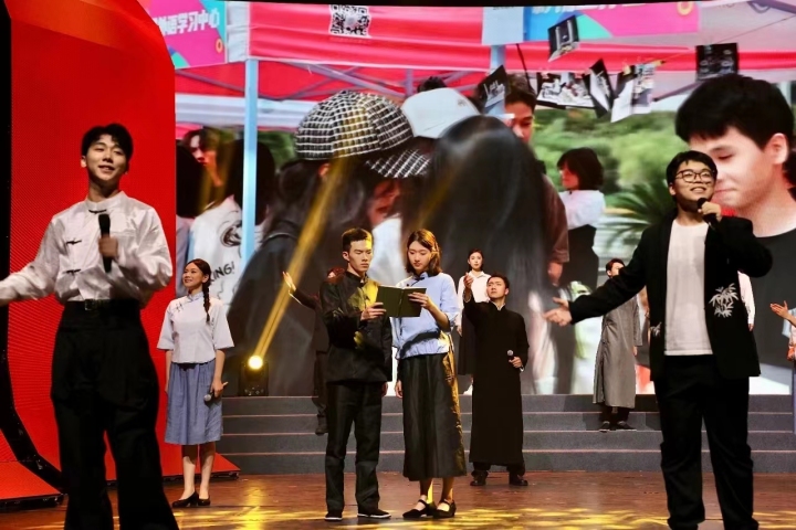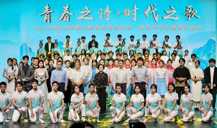 5月4日下午,一场名为“青春之诗·时代之歌”的青春诗会在浙江传媒传媒学院桐乡校区小剧场上演。诗会采用音诗画、舞蹈、话剧、音乐等多种形式,将古典文化与现代艺术融为一体,带广大青年沉浸式体验了一场诗歌艺术与家国情怀并举、唯美浪漫与青春朝气兼收的青春逐梦之旅。