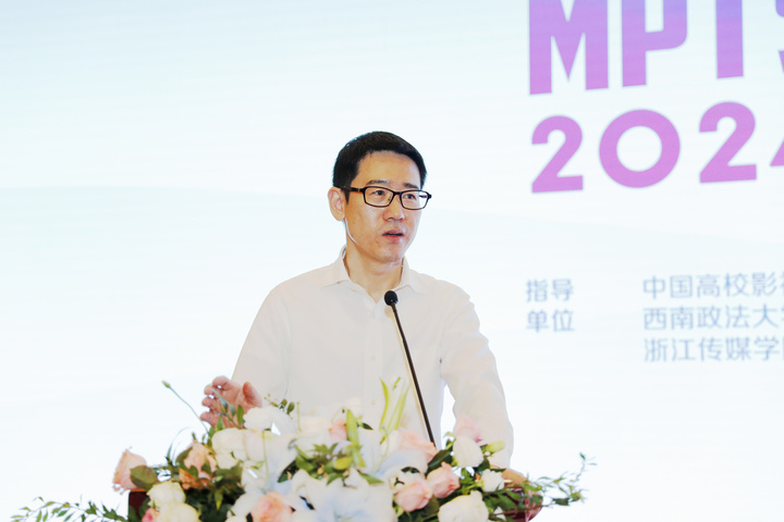 中国高校影视学会学术委员会主任,北京师范大学艺术与传媒学院胡智锋教授作了题为《高科技赋能下电影工业发展的“热运行”与“冷思考”》的报告,他从电影工业数字化、网络化和智能化赋能三个层面指出了电影工业的现状趋势和行业局限性,提出人类一方面要拥抱高新科技AI,另一方面保持冷思考,高扬人文主义旗帜,保持人类的个性化和主体性。