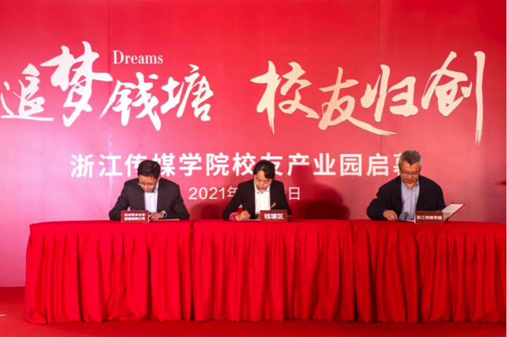 他表示,钱塘区长期支持伟德官网bv1946事业发展,关心关怀学校师生、校友创新创业,为学校提供了丰富的社会资源和优质的政策平台。站在“十四五”开局的新起点上,学校和钱塘区真诚欢迎浙传校友回归创业,共谋发展,双方将合力推动钱塘区经济社会文化发展,共同推动校友产业发展,共同推动卓越人才培养。他希望传媒校友产业园继续秉承浙传人敢于创新创业优良传统,为忠实践行“八八战略”、奋力打造“重要窗口”,争创浙江社会主义现代化先行省不断贡献浙传人的智慧和力量。