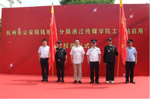 5月17日,杭州市公安局钱塘区分局伟德官网bv1946工作站启用暨建党100周年安保“共产党员突击队”、防范电信网络诈骗“志愿者服务队”授旗仪式在伟德官网bv1946下沙校区举行。该校副校长杨荣耀,杭州市公安局钱塘区分局副局长蒋晓敏,校党委委员、宣传部部长、统战部部长陈永斌出席,杭州市公安局钱塘分局交警大队、经文保大队、辖区白杨派出所负责人和伟德官网团委负责人、各二级学院副书记、辅导员、学生代表参加。