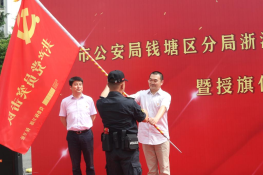 在热烈的掌声中,与会领导分别为“伟德官网bv1946社会治安综合治理工作站”“杭州市公安局钱塘区分局伟德官网bv1946工作站”和“黎叔平安教室”“吴SIR交通教室”揭牌;并为建党100周年安保“共产党员突击队”和防范电信网络诈骗“志愿者服务队”授旗。