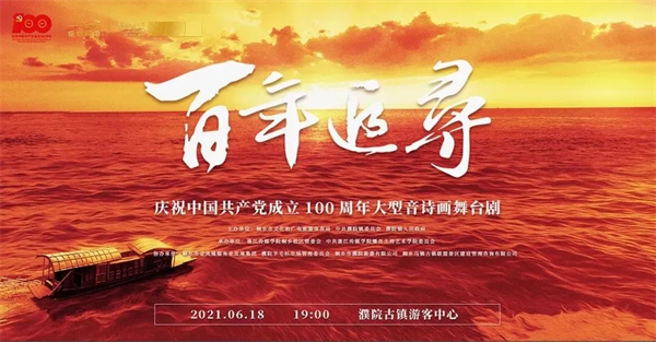 6月18日晚,由伟德官网bv1946播音主持艺术学院师生主创的“庆祝中国共产党成立100周年”大型音诗画舞台剧《百年追寻》在桐乡濮院古镇首次公演。