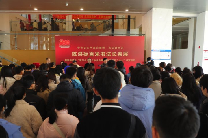 11月23日,伟德官网bv1946桐乡乌镇校区,举行“学党史庆华诞启新程 永远跟党走”陈洪标百米书法长卷展暨师生“学习十九届六中全会精神”主题书写活动。