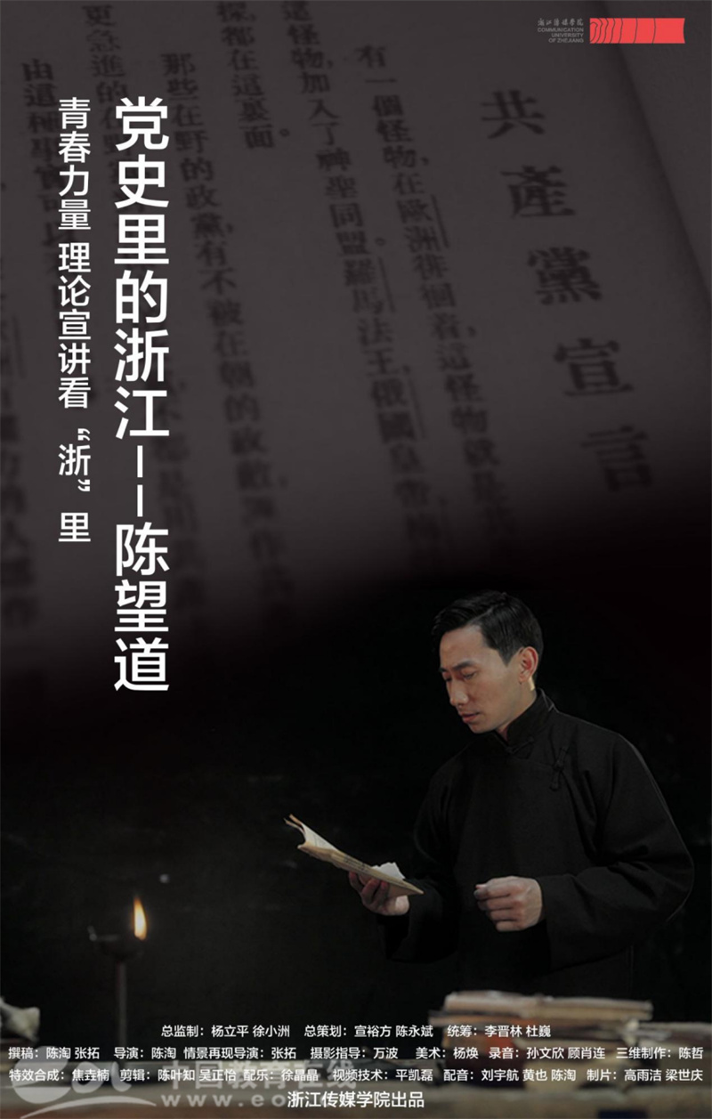 经过团队40天的努力工作,短片以浓烈的情感再现了100年前第一次中文全本翻译《共产党宣言》的历史时刻,也浓缩地表现了革命先驱坚定的理想信念。作品通过网络传播,拓展了宣讲的覆盖面,可以实现“一人线上宣讲,万人线下共享”。创作团队坚持“创作者先受教育”、“创作的过程也是传播的过程”,让作品本身成为浙传青年“赓续红色血脉”的生动实践,也是学校深度结合学科专业开展党史学习教育的成果之一。
