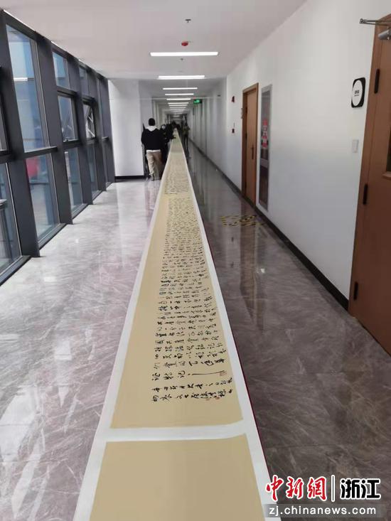 中新网浙江新闻11月29日电(童笑雨 李晨霞 赵艺琦)近日,“学党史庆华诞启新程 永远跟党走”陈洪标百米书法长卷展在浙江嘉兴举行。