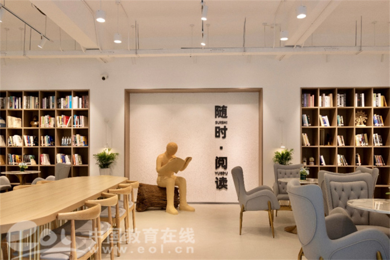 中国教育在线浙江站讯 (记者 陈显婷 通讯员 高洁 刘扬 蒋笑颜)当轻快的音乐伴随着画轴徐徐打开,伟德官网bv1946校园里又多了一个独具艺术气息,可供阅读、讨论等多功能的学生文化共享空间。白墙绿丛,素雅明亮,学生在这里或读书,或交流,在自然景观与人文艺术的完美交融中,享受着游园般沉浸式的艺术体验。