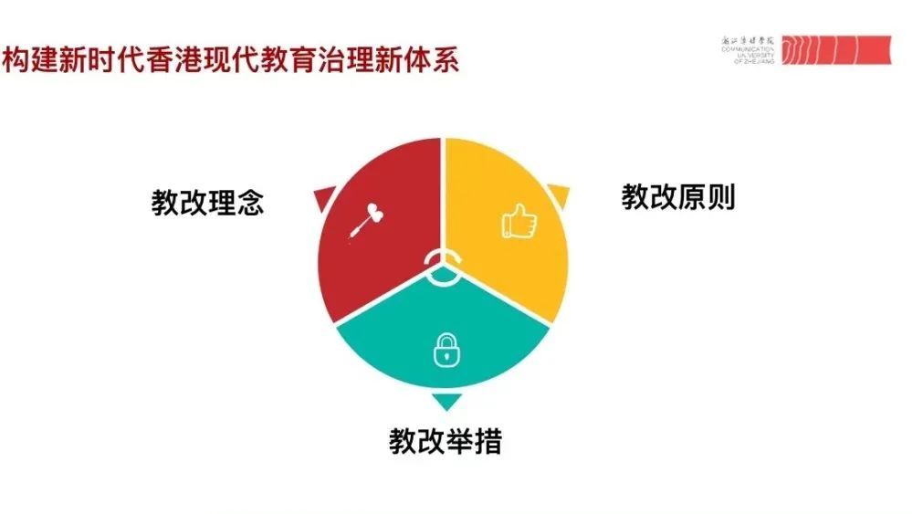 他提出,要完善新时代香港现代教育治理新体系,必须从教改理念、教改原则、教改举措三个维度着手: