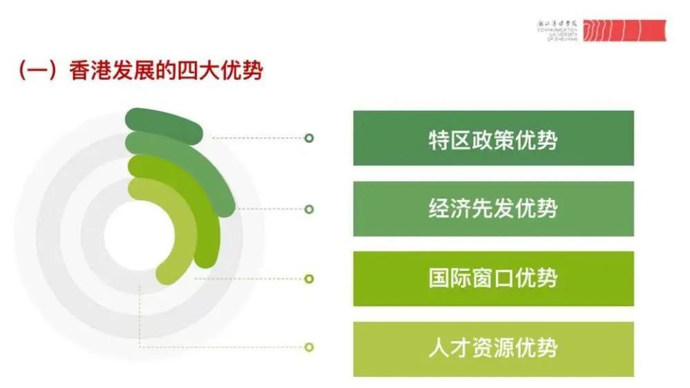 他指出,香港发展在特区政策、经济先发、国际窗口、人才资源方面具有明显的优势。在“一国两制”的框架下,在中央政府以及大陆有关省市关心支持下,香港经济起步早、机制活,是世界重要的金融、贸易、交通、旅游、信息和通信中心。作为对外开放窗口,香港得国际化大都市之利,通过引领性人才引进计划,延揽了一大批世界优秀人才,这些优势为香港未来发展奠定了重要基础。