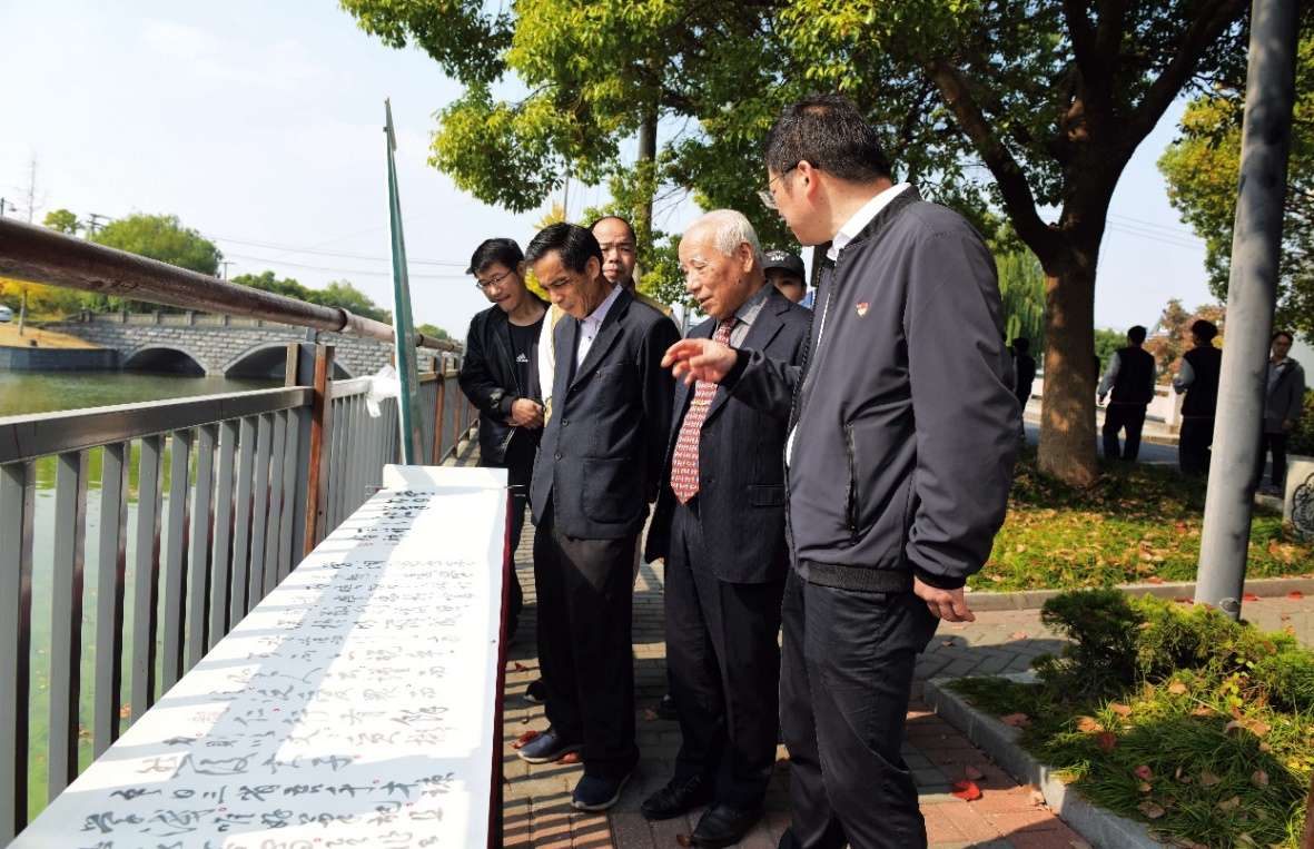 11月8日,百米书法长卷展走进“全国文明村”——杭州市钱塘区河庄街道江东村。此次活动由伟德官网bv1946宣传部、中共杭州市钱塘区宣传部、区文联和钱塘区河庄街道办事处联合主办。