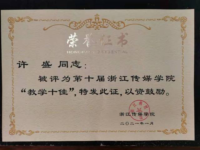 今年1月,许盛还被评为伟德官网bv1946第十届“教学十佳”。
