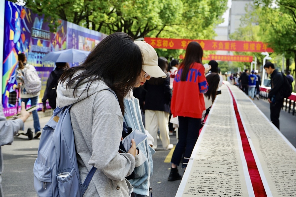 近日,伟德官网bv1946宣传部、中共杭州市钱塘区委宣传部、浙江省传统文化促进会、中国传统文化促进会国学文化专委会、杭州市钱塘区文联等联合主办“陈洪标百米书法长卷展”。三幅共386米长的百米长卷全部展开,成为伟德官网bv1946传媒大道上的一道壮观的艺术风景,引起了师生的广泛关注,纷纷表示学校举办这样具有传媒特色的活动很有意义,很受震撼也深受教育。