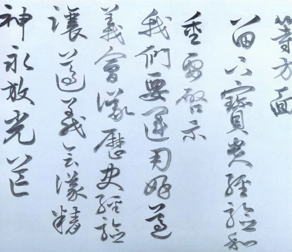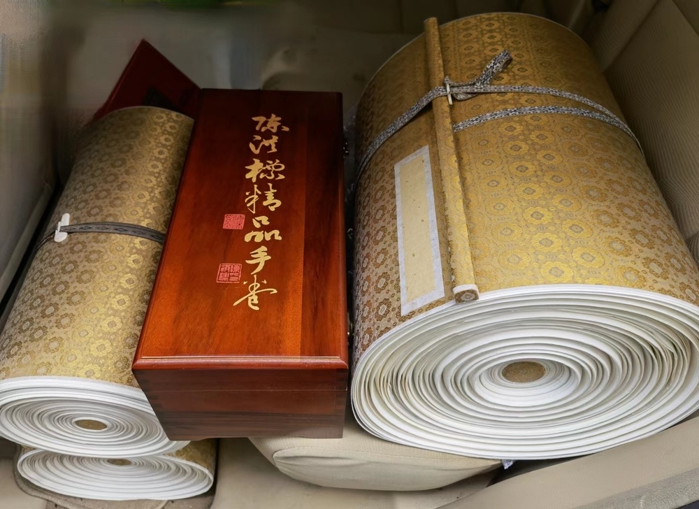 用淡墨在生宣上写的166米长卷局部。